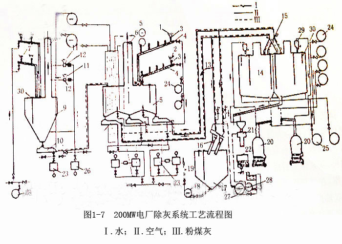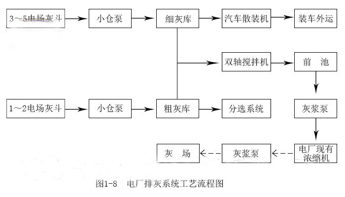 圖1-7是該廠除灰系統(tǒng)工藝流程圖。